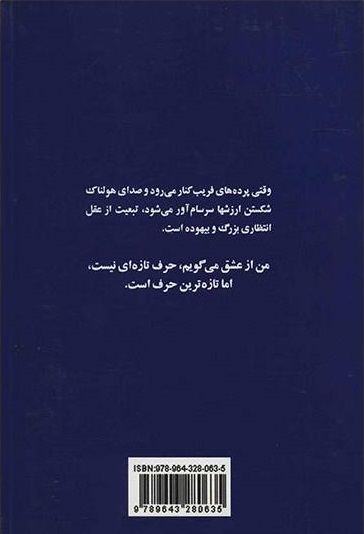 وقتی پرده های فریب کنار میرود و صدای هولناک شکستن ارزشها سرسام آور میشود ، تبعیت از عقل انتظاری بزرگ و بیهوده است.من از عشق میگویم ، حرف تازه ای نیست.اما تازه ترین حرف است…